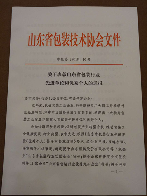 為加快新舊動能轉(zhuǎn)換,促進(jìn)包裝產(chǎn)業(yè)轉(zhuǎn)型升級,推動包裝行業(yè)健康發(fā)展,樹立典型,表彰先進(jìn),按照《山東省包裝行業(yè)先進(jìn)單位(優(yōu)秀個人)獎評審實(shí)施細(xì)則》要求,經(jīng)全省企業(yè)申報、市地初審、評審領(lǐng)導(dǎo)小組審定,山東省包裝技術(shù)協(xié)會確定授予仲鉑新材料有限公司、濟(jì)南恒品機(jī)電技術(shù)有限公司、日照金寶包裝制品有限公司等17家包裝企業(yè)“山東省包裝行業(yè)優(yōu)秀成長性企業(yè)”稱號;授予濰坊綠洲包裝材料有限公司張奉軍、濟(jì)南恒品機(jī)電技術(shù)有限公司張紅普等6人“山東省包裝行業(yè)優(yōu)秀科技帶頭人”稱號。濟(jì)南恒品憑借優(yōu)秀的技術(shù)團(tuán)隊(duì)、持續(xù)的創(chuàng)新能力、精細(xì)化的產(chǎn)品管理,良好的產(chǎn)品品牌形象得到業(yè)界和協(xié)會的充分肯定。